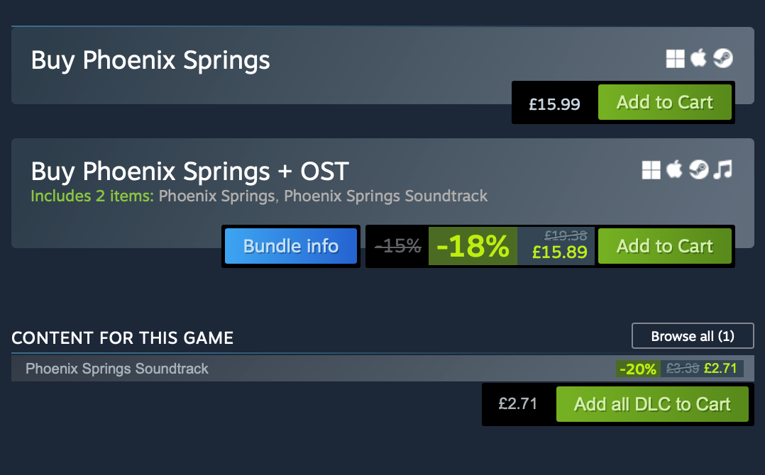 Haven’t played Phoenix Springs yet? The game + OST is available at a discount for a limited time only.